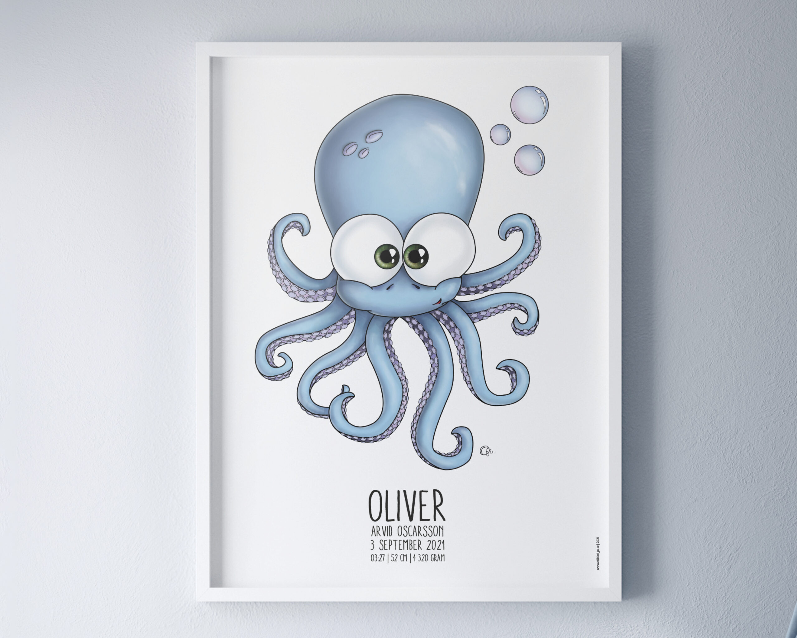Ge bort en personlig doptavla till den lille. Välj ett av de 35 djuren och den födelseinformationen du önskar. Förslagsvis fullständigt namn, födelsedag, tid, vikt och längd.